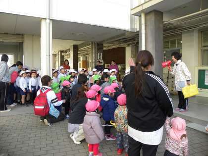 災害が起こったとき、三愛幼稚園の園児たちの避難場所は今津小学校です。