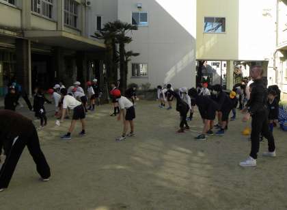 毎日、行っているラジオ体操ですが、水・木曜日は英語バージョンの曲に合わせて体操をしています。5・6年生の英語活動の指導をしてくださっているスミス先生に合わせてです。