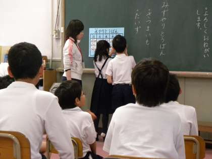 なかよし学級の子どもたちが月に1回集まり、自立に向けて学習します。季節の行事を楽しんだり、異学年との交流で友だちへの思いを深めたりします。