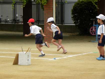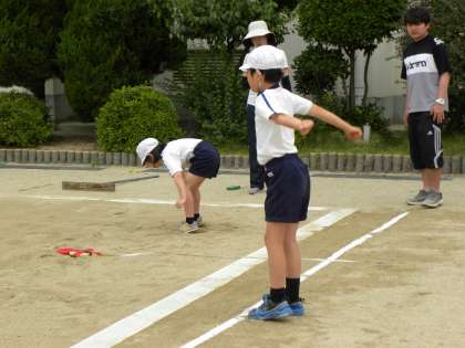 1時間目は2年生でした。立ち幅跳び、50m走、ソフトボール投げをします。