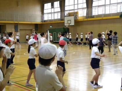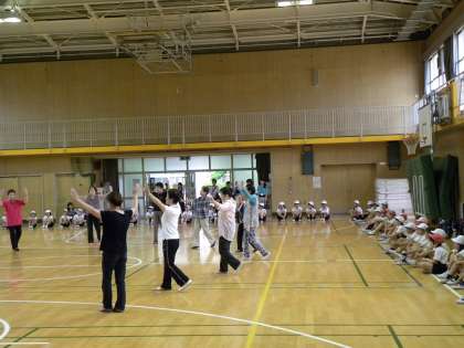 暑い講堂で3年生も4年生も汗しながら踊りました。