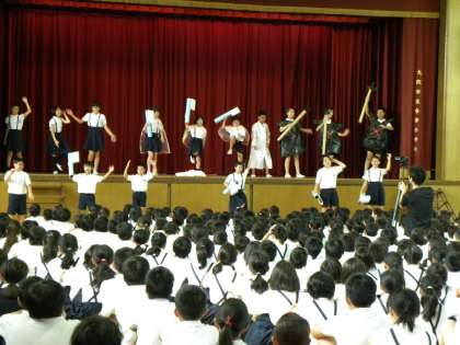 「歯磨きの歌」に合わせてのダンスで健康委員会の人たちの劇が終わりました。