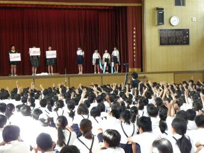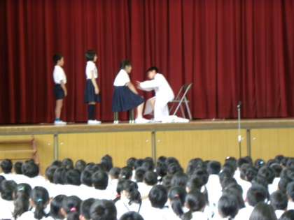 今日の児童集会は学校保健委員会を開きました。学校保健委員会は、児童・教職員と学校医の先生と保護者の皆さんで子どもたちの健康について考える会です。