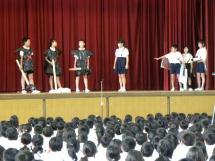 今日は、「歯と口の健康を考えよう」というテーマで学習しました。児童健康委員会のみんなが虫歯をなくすための劇やクイズをしました。クイズを通して分かりやすく虫歯について考えました。
