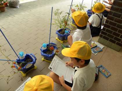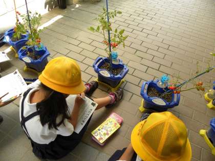 2年生の育てているミニトマトが真っ赤に熟しました。