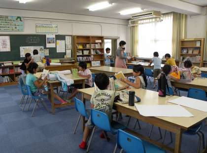 夏休みに入りました。学校では、プール開放、図書館開放が行われています。