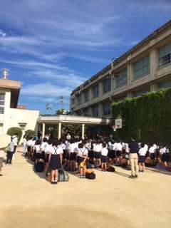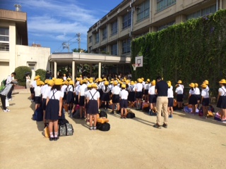 晴天のもと、5年生の子どもたちが朝早くから登校してきました。