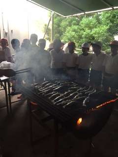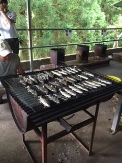 つかんだ魚を焼いてもらい、みんなで食べました。焼き立ては美味しい??