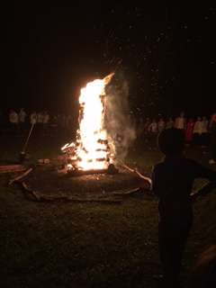 夜はキャンプファイヤーをしました。校長先生が鉢伏山の火の神様より分けていただいた火を囲み、ゲームやダンスをして、楽しく集いました。