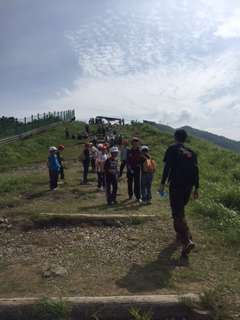 急な斜面を登ります。