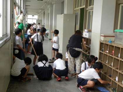 8月27日、始業式のあと、保護者の方に来ていただき子どもたちと一緒に清掃をしていただきました。