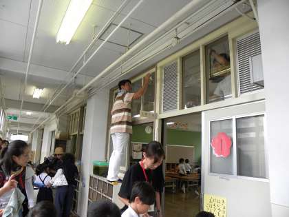 子どもたちだけでは手の届かない窓などを掃除してくださいました。