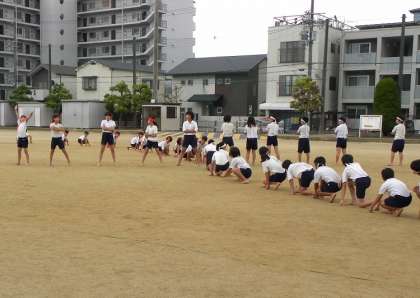 3時間目からは、運動場の水がうまくはけ運動場での練習ができました。