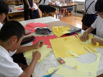 掲示委員会は読書週間にちなんだものや紅葉した葉、ぶどうなどの果物秋の掲示物を作りました。