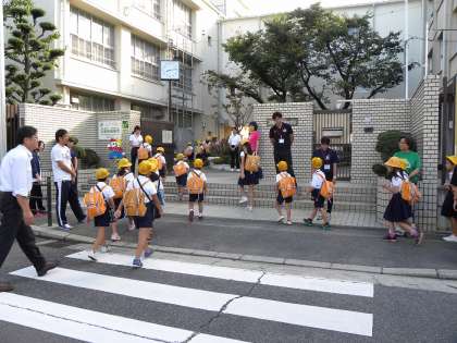 その間、毎朝玄関に立って子どもたちへの登校指導をしました。子どもたちは4週間、実習生の元気な声と笑顔に迎えられました。子どもたちの一日のスタートを声をかけながら出迎えることの大切さを体感することができたと思います。