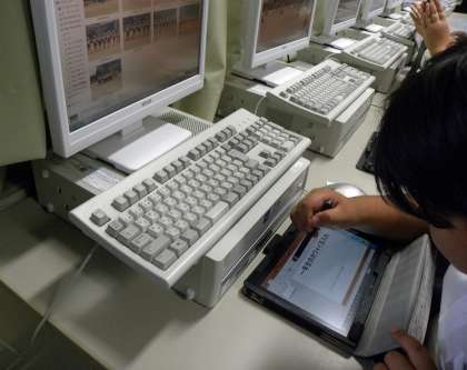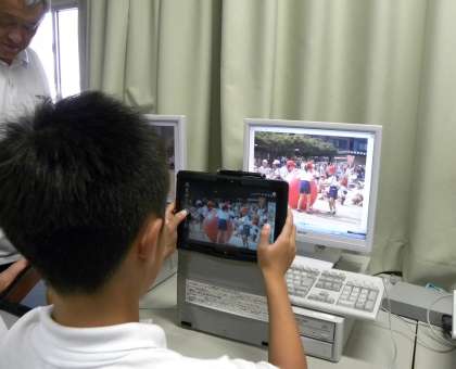 運動会の様子をタブレットで撮り、その画像にタイトルや見出しを書き加え(パワーポイント機能を使って)新聞記事に仕上げています。