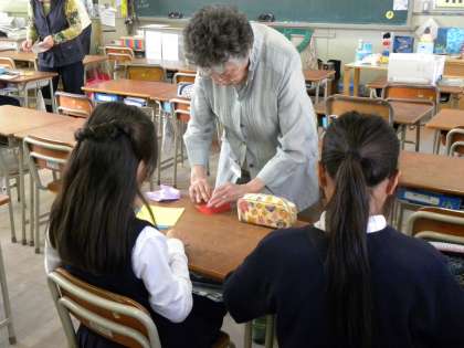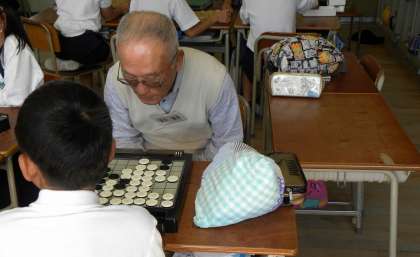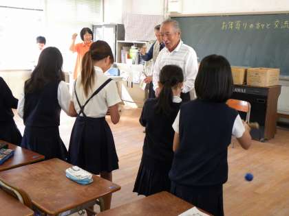 4年生と5年生は、お年寄りとの交流で「五目並べ・はさみ将棋・オセロ」「けん玉・こま回し」「折り紙」「お手玉遊び」「袋づくり」「グラウンドゴルフ」をしました。昔ながらの手や体を使う遊びの楽しさを教えていただいたり、「上手だね。」と褒めていただいてうれしそうにしていたり、ほっこりした時間を共に過ごすことができました。