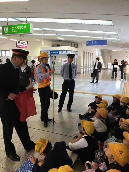 JR徳庵駅で切符を買い放出駅まで乗車しました。放出駅では駅員さんに駅での仕事をお話しいただきました。また、駅全体が見えるお部屋も見せていただきました。