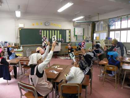 今日のなかよしタイムは春に植え、先日みんなで収穫したおいもでパーティ−をしました。一人ひとり係を受け持ち、今日の日にむけて練習をしました。みんな立派に役割を果たすことができました。
