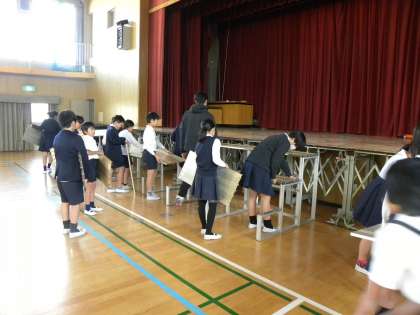 学習発表会にむけて、講堂の準備をしました。舞台にはせり台や雛壇を設置しました。