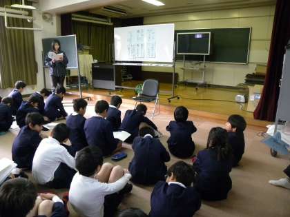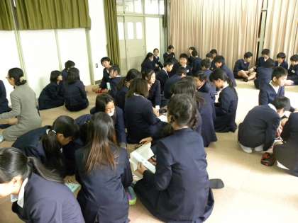 5年生は講堂で台本読みです。