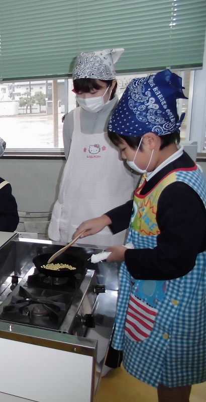 5月になかよしのみんなは大豆の種をまき大豆に育てました。その収穫した大豆をきな粉にする活動でした。