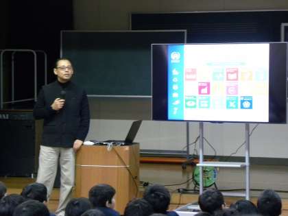 6年生は国際連合環境計画 (UNEP)よりネパールのマヘシ プラドハン先生に来ていただき環境についての学習をしました。