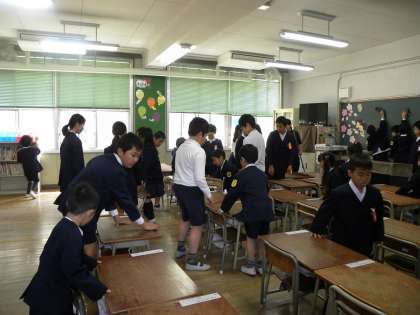 1年生は、教室のそうじの仕方やほうきのはき方、机の運び方、雑巾がけの仕方を教えてもらいました。