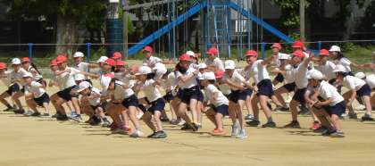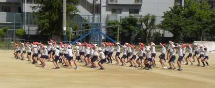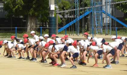 腰を低くくした姿勢で網を引き、漁をする様子を表現します。当日は「今津のはっぴ」を着ます。
