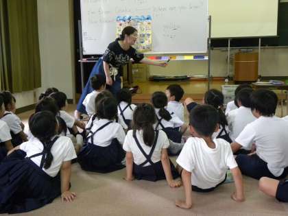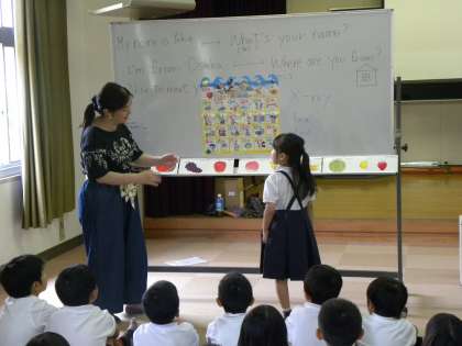 今日は1年生が英語の活動をしました。教も山口先生に来ていただきました。