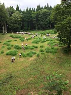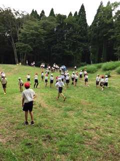 宿舎下のキャンプファイアー場草原で、自由遊びです。