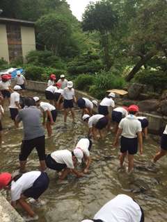 魚つかみです。アマゴを石の間に追いやり、掴みます。