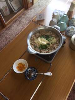 楽しみにしていた夕食です。今晩は豚味噌なべです。