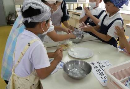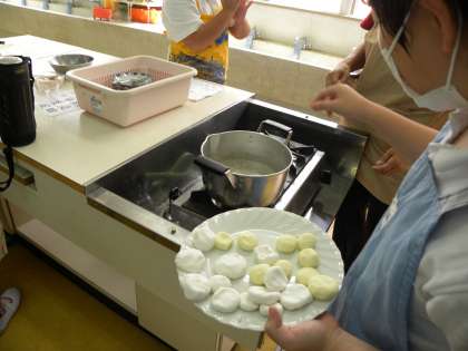 今日のなかよしタイムはお月見だんごを作りでした。お月見やお月見にどうしておだんごを作っておそなえするのかや月についてのクイズの後、みんなでだんごを作って食べました。
