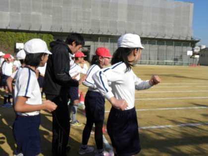 速く走るために「腕の振り方や太ももの上げ方、足の着き方、前を見る、リズムよく」のポイントを教えていただき、そのポイントにそって練習をしました。