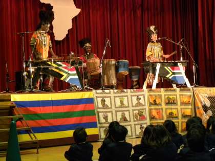 南アフリカの伝統楽器マリンバにアフリカンドラムの演奏や歌を聞かせていただきました。