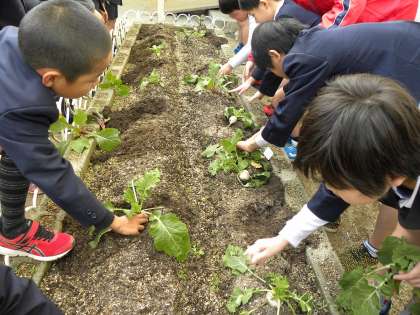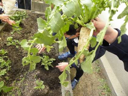 今日のなかよしタイムは、秋に植えた野菜の収穫をしました。赤かぶ、白かぶ、大根です。
