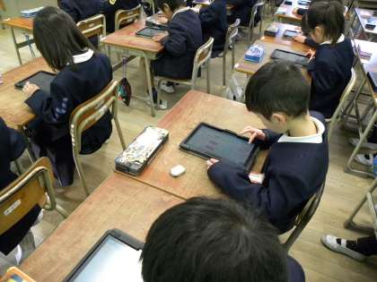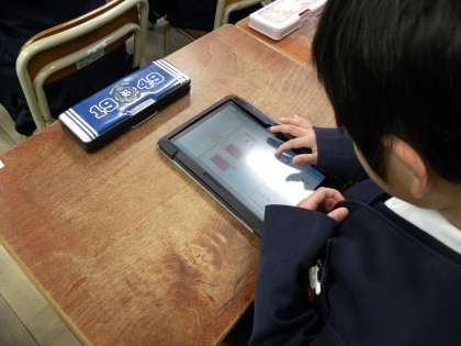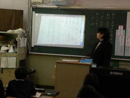 1年生は国語科で「まとめてよぶことば」を学習しました。タブレットになかまわけできる言葉やそれをまとめる言葉が提示されていて、その言葉を表に分類していきました。