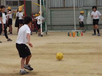 (写真下)「PKボーリング」:正確なキック力で何本倒せるか!