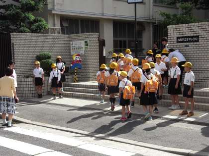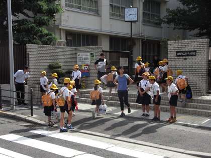 「自分たちからすすんであいさつができる学校にしよう」をめあてに、月曜日・水曜日・金曜日の登校時、4年以上の各クラスの代表委員が交代で校門前に立ち、「おはようございます!」と元気いっぱいのあいさつをしながら、全校児童を迎えています。まさに、あいさつの仕方の「あいうえお」の手本になるようなあいさつです。登校児童も代表委員につられて、元気いっぱいのあいさつ。学校生活の活気あふれる一日のはじまりです。