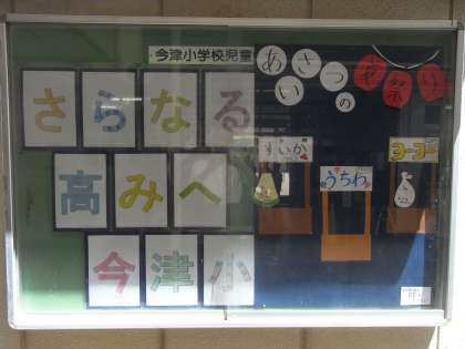 また、児童会の掲示板には、代表委員が朝のあいさつのがんばりの様子をコメントしたカードが貼り出され、みんなの励みになっています。