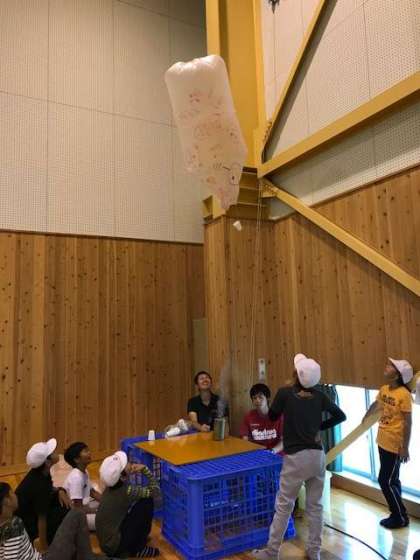 最後の行事、ミニ気球作りを行いました。
