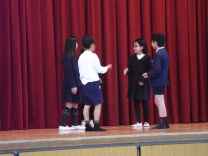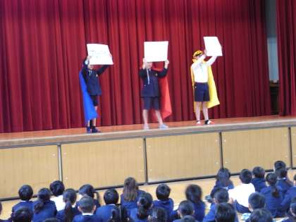 今回のテーマは、「健康委員会の本当にあったスマホの怖い話」です。健康委員会の児童が、劇やクイズで正しいスマートフォンの使い方を全校児童に呼びかけました。