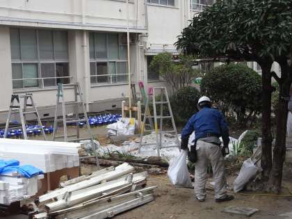 中庭にあるほたる小屋が新しく建て替えられることになりました。すべて解体し、一からの建て替えです。年内には完成できるように、急ピッチで作業を進めています。