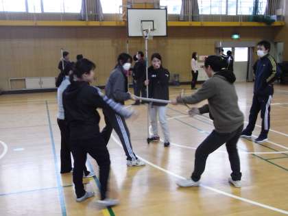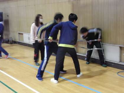 1月25日(金)の放課後、教職員は、凶器を持った危険な不審者が校内に侵入して来たという想定で、さすまたを使った防犯訓練を行いました。講師として、鶴見警察署の職員の方にお越しいただきました。
