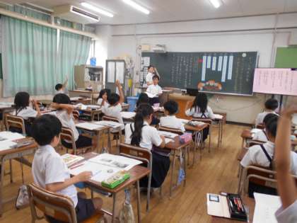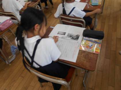 3組で国語科の授業研究を実施しました。「ビーバーの大仕事」を読み、ビーバーがダムを作ることができる理由を見つけ、クイズの問題と答えを作りました。