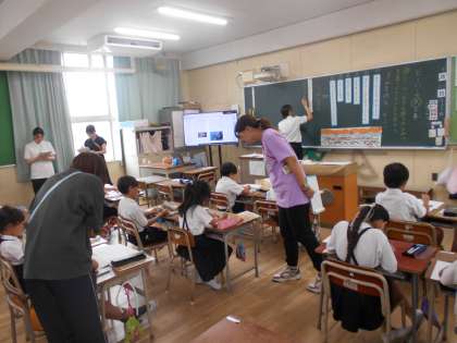 4時間目に2組で国語の授業研究会を行いました。総合教育センターより指導員の先生をお招きし、放課後に授業の振り返りを行い、本校教員の今後の指導技術の向上につなげていきます。