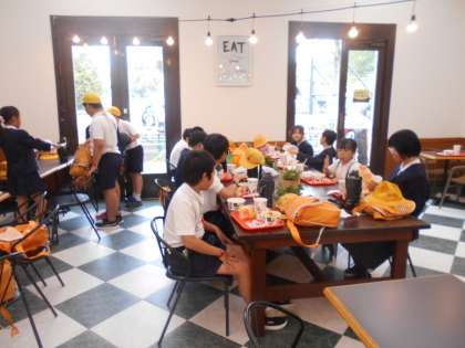 アトラクションから次第に昼食場所に集まってくる子どもたちが増えてきました
