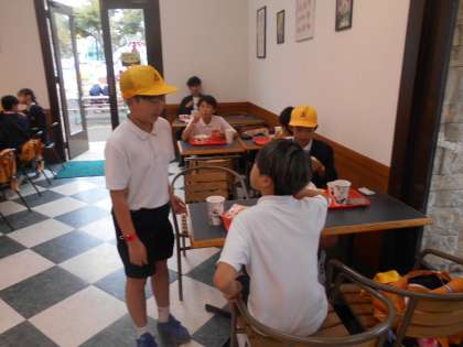 ハンバーガーショップがとても人気です。今津の子どもたちで貸し切り状態になる時間帯もありました。