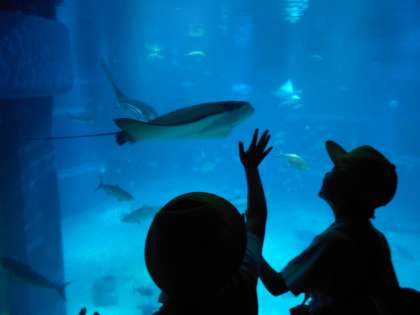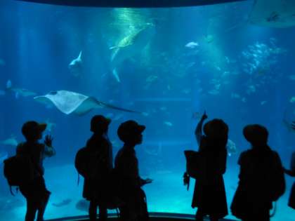 魚たちのエリアにやってくると少し薄暗くなり、海の中を進むイメージが高まります。